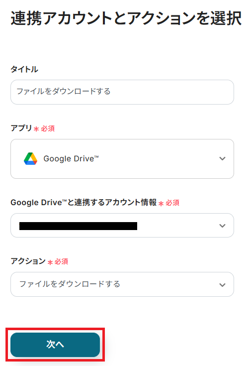 ステップ4:Google Driveのアクション設定