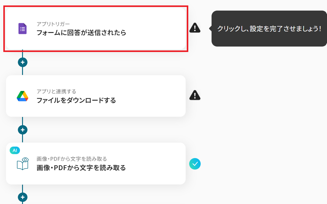 ※OCRや音声を文字起こしするAIオペレーションは、チームプラン・サクセスプラン限定の機能です。フリープランやミニプランでセットするとエラーになってしまうので、ご注意ください。チームプランやサクセスプランなどの有料プランは、2週間の無料トライアルが可能です。トライアル期間中は、通常だと制限があるアプリやAIオペレーションもすべて使えるので、気になる機能をぜひお試しください。