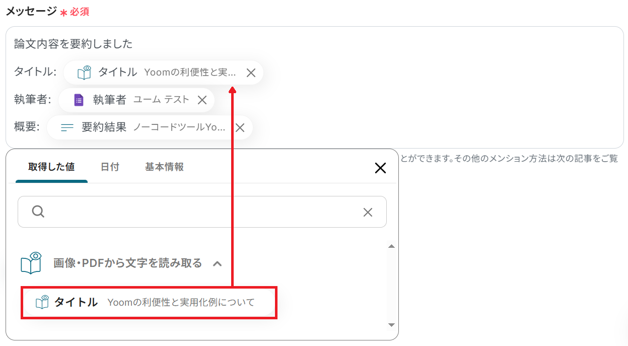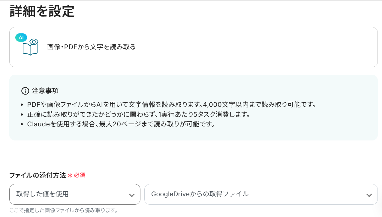 ※YoomのOCR機能では、アクション記載の規定の文字数を超えるデータや、文字が小さすぎる場合に正しく読み取れないことがあります。文字数や文字の大きさには少し余裕を持たせてご利用ください。