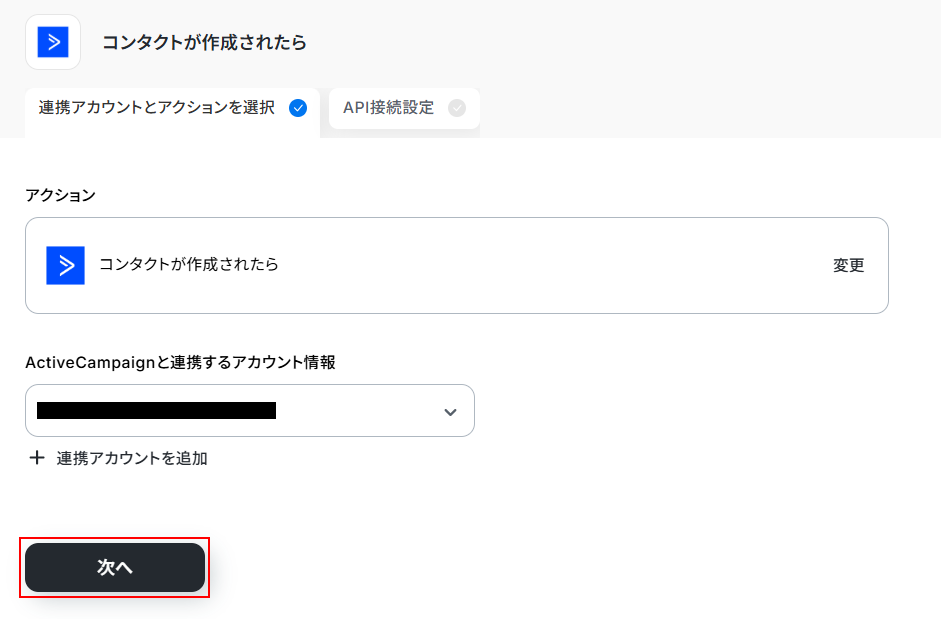 ステップ4:ActiveCampaignのコンタクト情報を取得する設定