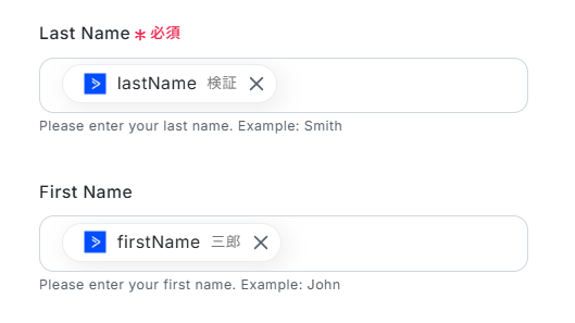 Last Name、First Nameにはデフォルトで取得した値が設定されています。 項目名だけではなく、実際の値が表示されているのを確認してください。
