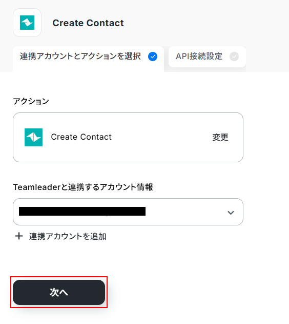 HubSpotで新しいコンタクトが作成されたら、Teamleaderにコンタクトを作成する