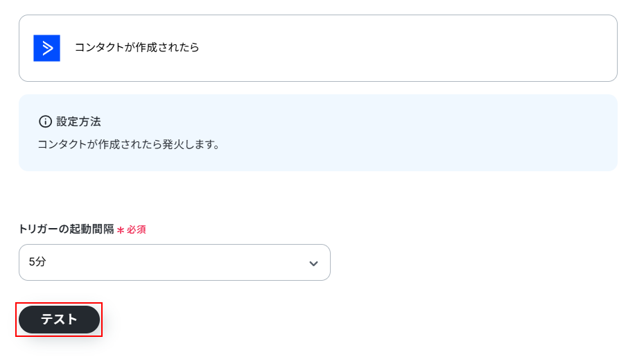 5分、10分、15分、30分、60分のいずれかで設定できます。 ※ご利用プラン によって、設定できるトリガーの最短間隔が違うので、その点は要チェックです。 なお、基本的にはそのプランの最短の起動間隔にしてお使いいただくことをおすすめします。