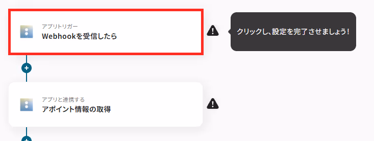 アプリトリガーのWebhookイベント受信設定をします。