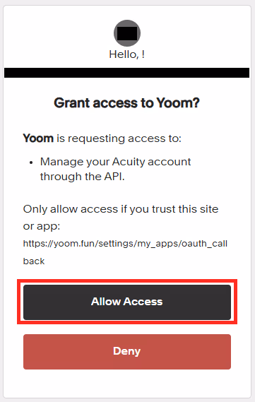 Yoomへのアクセス許可画面に移行します。