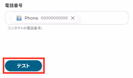 今回のテストでは「名前」と「電話番号」を設定しました。