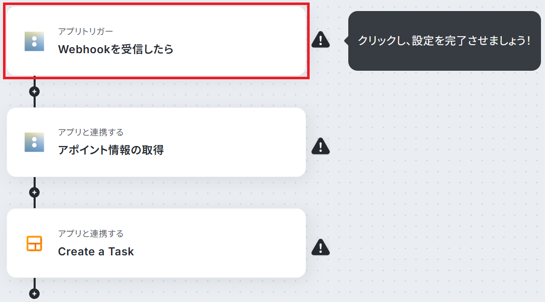 「Webhookを受信したら」をクリックしてください。