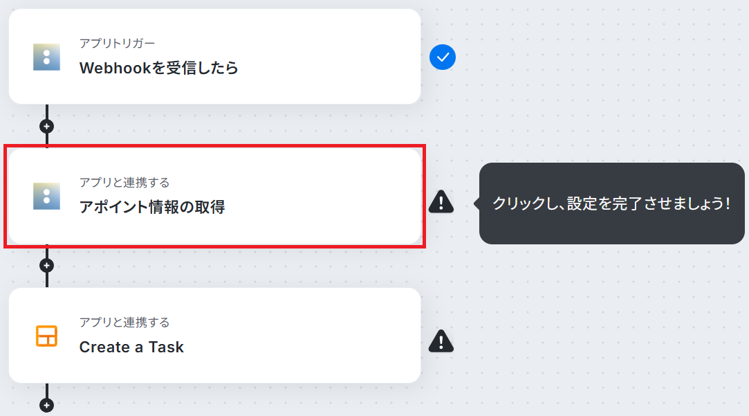 先ほど検知した予約の詳細情報を取得します。「アポイント情報の取得」をクリックしてください。