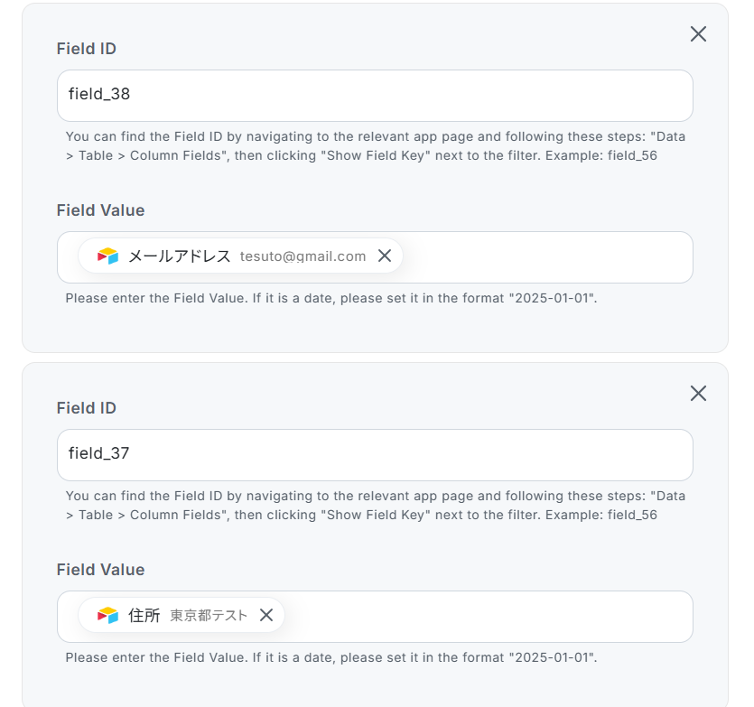 - Knackにレコードを追加する際に、データを登録したい対象のObject IDとField IDを任意で設定してください