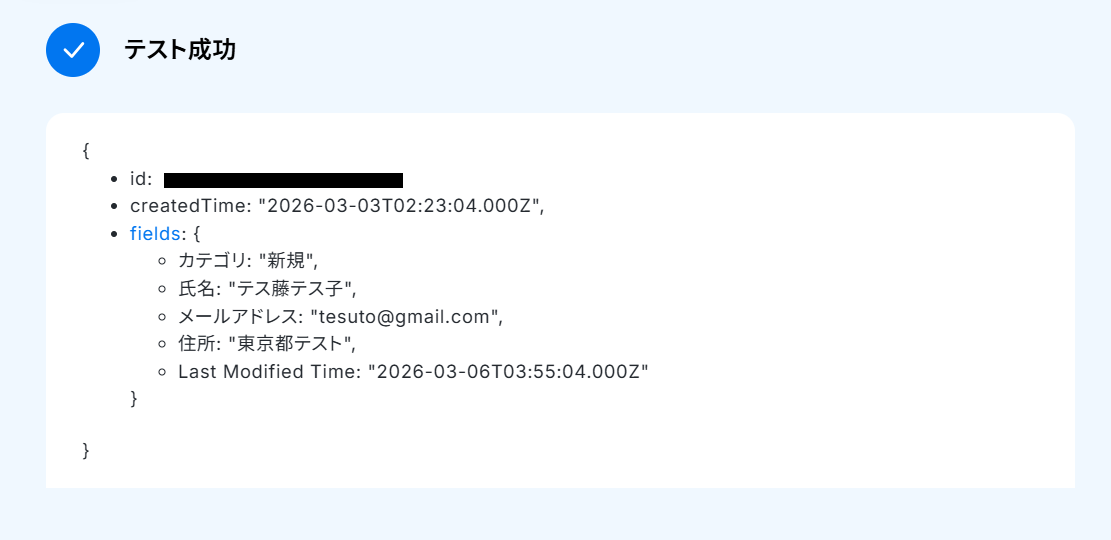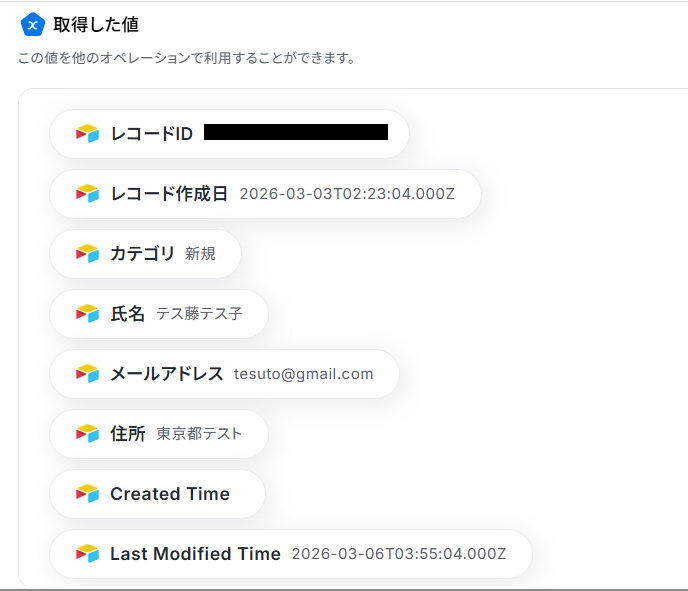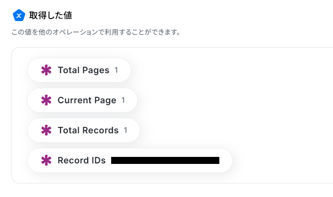 - AirtableのアウトプットはJSONPathから取得可能です。取得方法は「『取得する値』を追加する方法」をご参照ください。