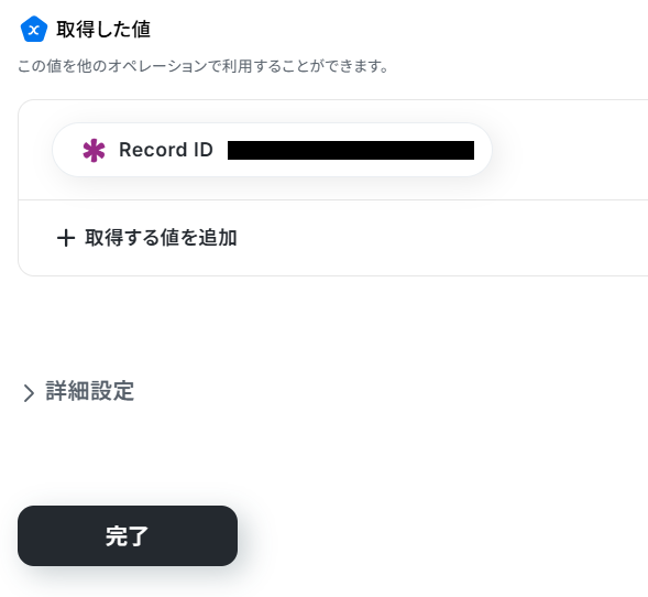 取得した値を確認し「完了」ボタンをクリックしましょう。
