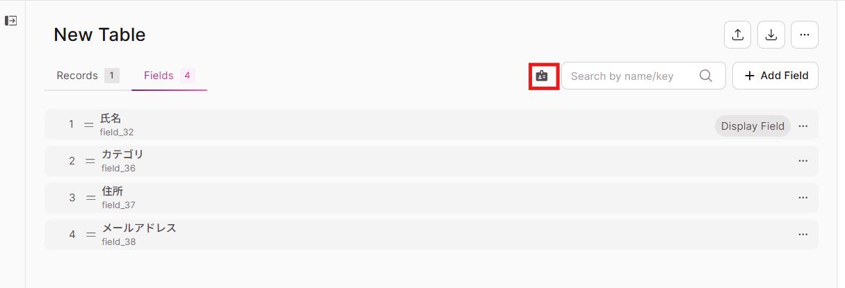 ▼参照:Fieldタブをクリック後、下記マークを押すとField名の下にField IDが表示されます。