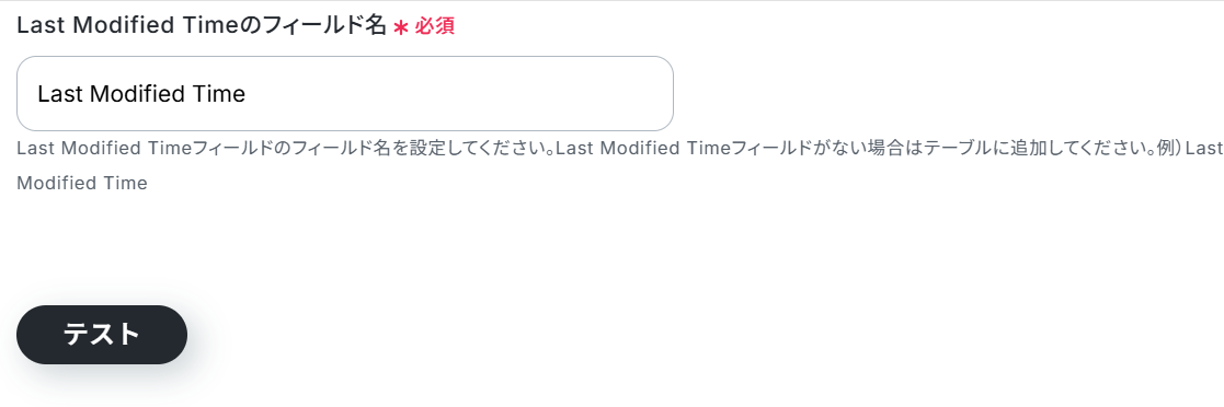 事前準備で用意したテーブルのLast Modified Timeフィールド名を入力してください。