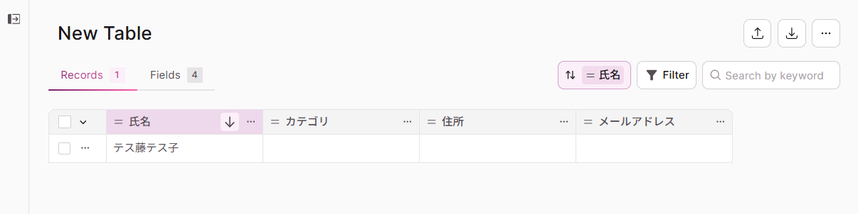 今回は、Airtableのデータを連携したいため、例として下記画像のように作成しました。