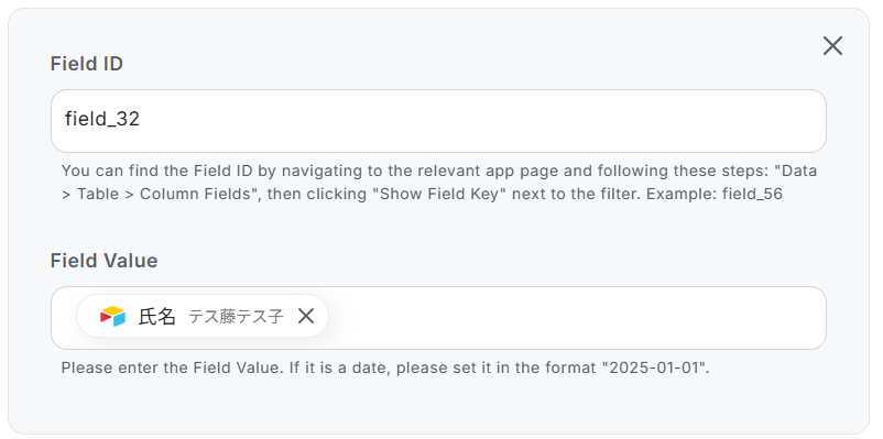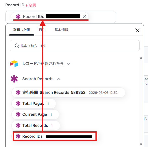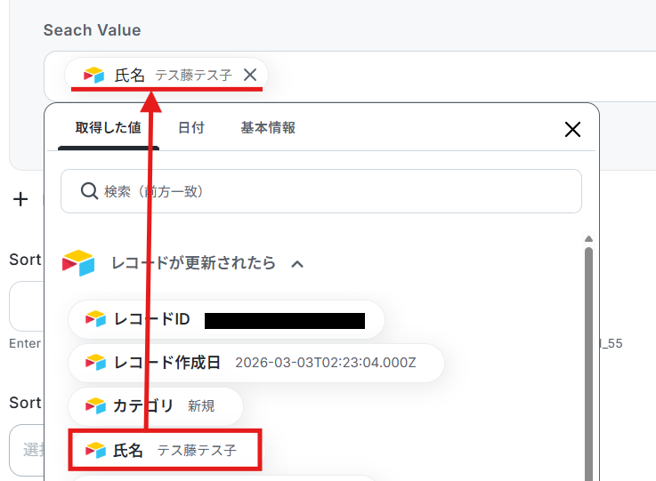 Seach Valueには、Airtableに登録した「氏名」を自動的に引用できるように設定されています。