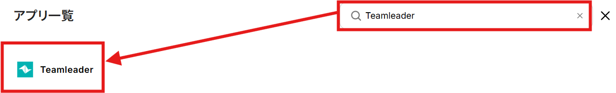 「新規接続」を選択すると「アプリ一覧」が表示されます。Teamleaderを検索して選択しましょう。