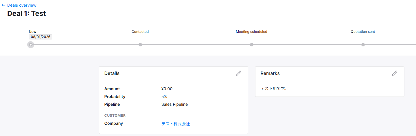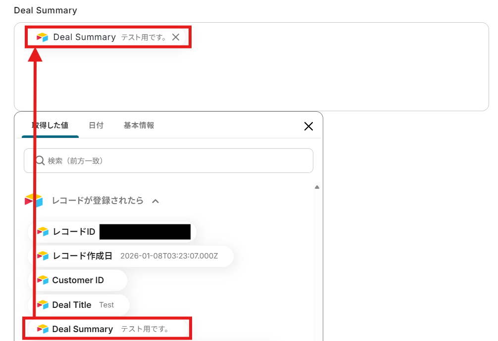 今回は例として「Deal Summary」を「取得した値」を用いて設定しました!