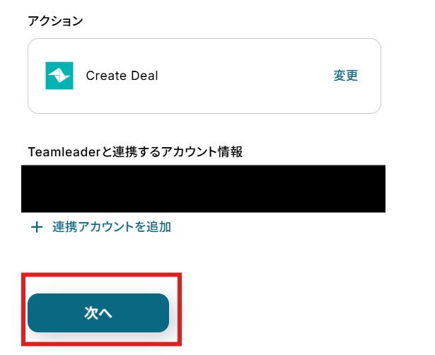 「Teamleaderと連携するアカウント情報」を確認し、「次へ」をクリックして進んでください。