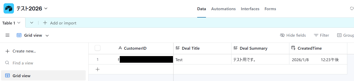 今回は「Customer ID」と「Created time」のフィールドが必須なので、忘れずに作成しておいてくださいね。