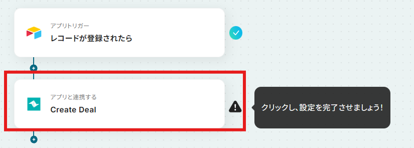 - 最後に、オペレーションでTeamleaderの「Create Deal」アクションを設定し、Airtableのレコード情報をもとにDealが作成されるように設定します。