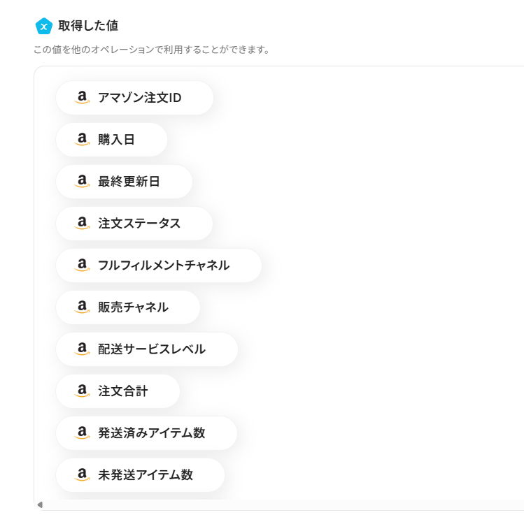 他にも、Amazon Seller Centralの「注文の配送先住所を取得」アクションなどをフローに追加することで、より詳細な顧客情報を取得することもできます。