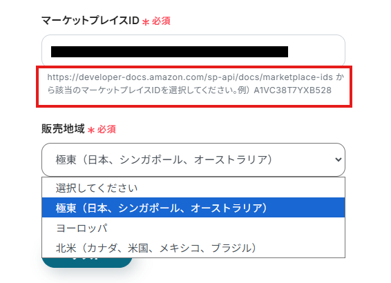 4.「マーケットプレイスID」は、入力欄下の説明に従って、入力してください。
