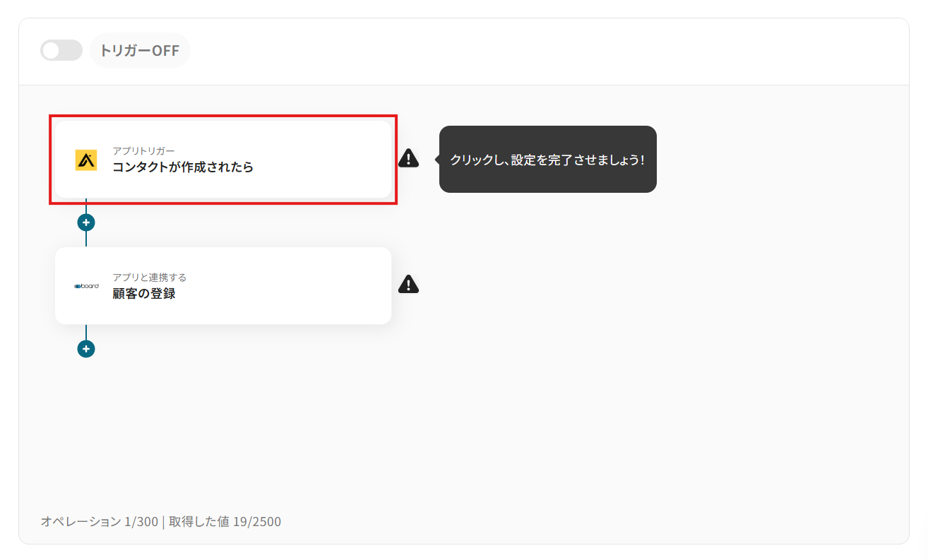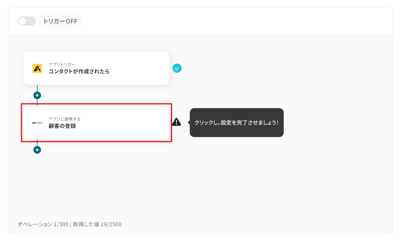 そのプランの最短の起動間隔にすることで、コンタクト作成時により早くboardでの顧客登録が行えるようになります。