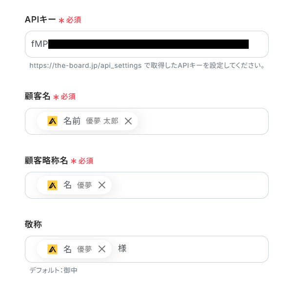 それでは、Apolloから取得したコンタクトの情報を用いてboardに顧客を登録しましょう。