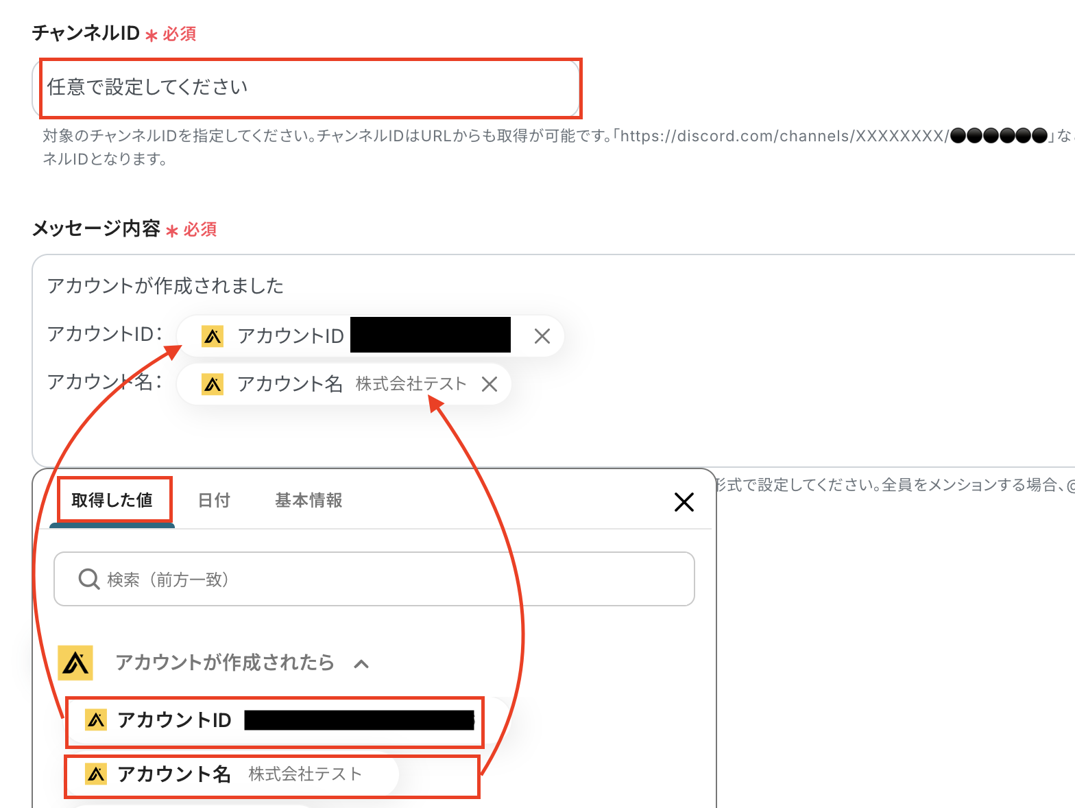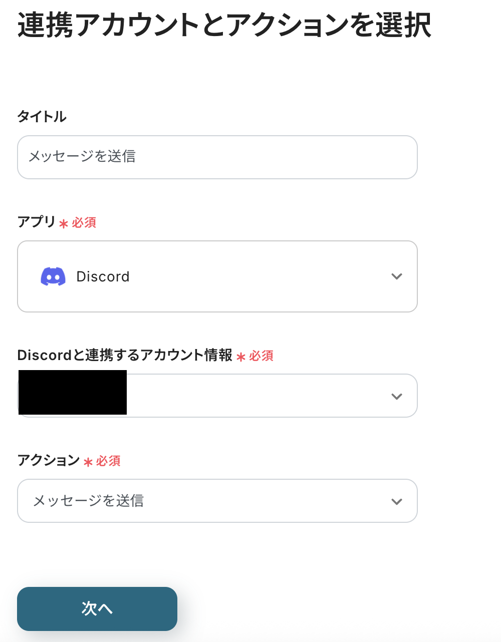 メッセージ内容は、Discordへ通知したい文章を作成してください。