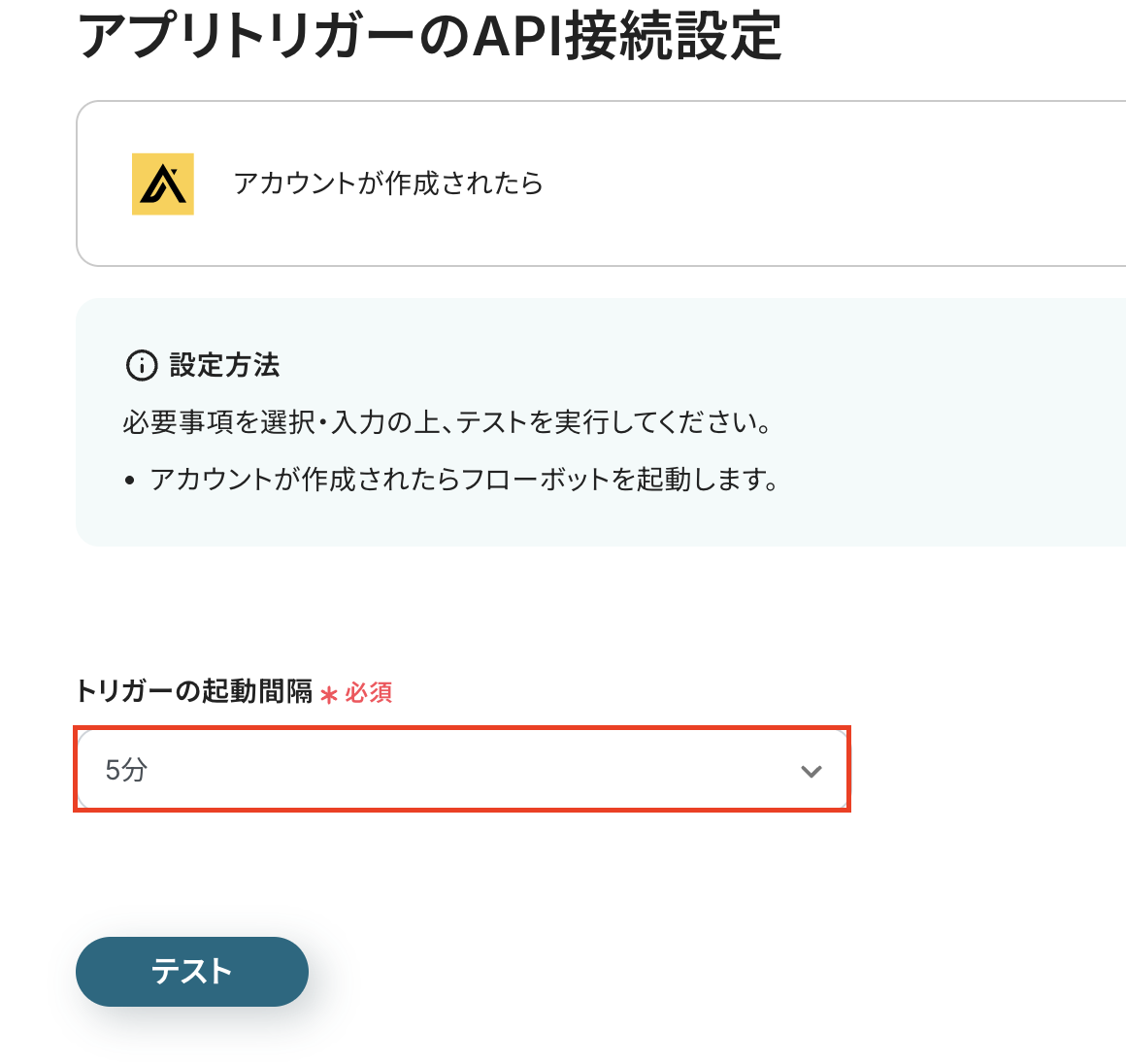 トリガーの起動タイミングは、5分、10分、15分、30分、60分のいずれかで設定できます。