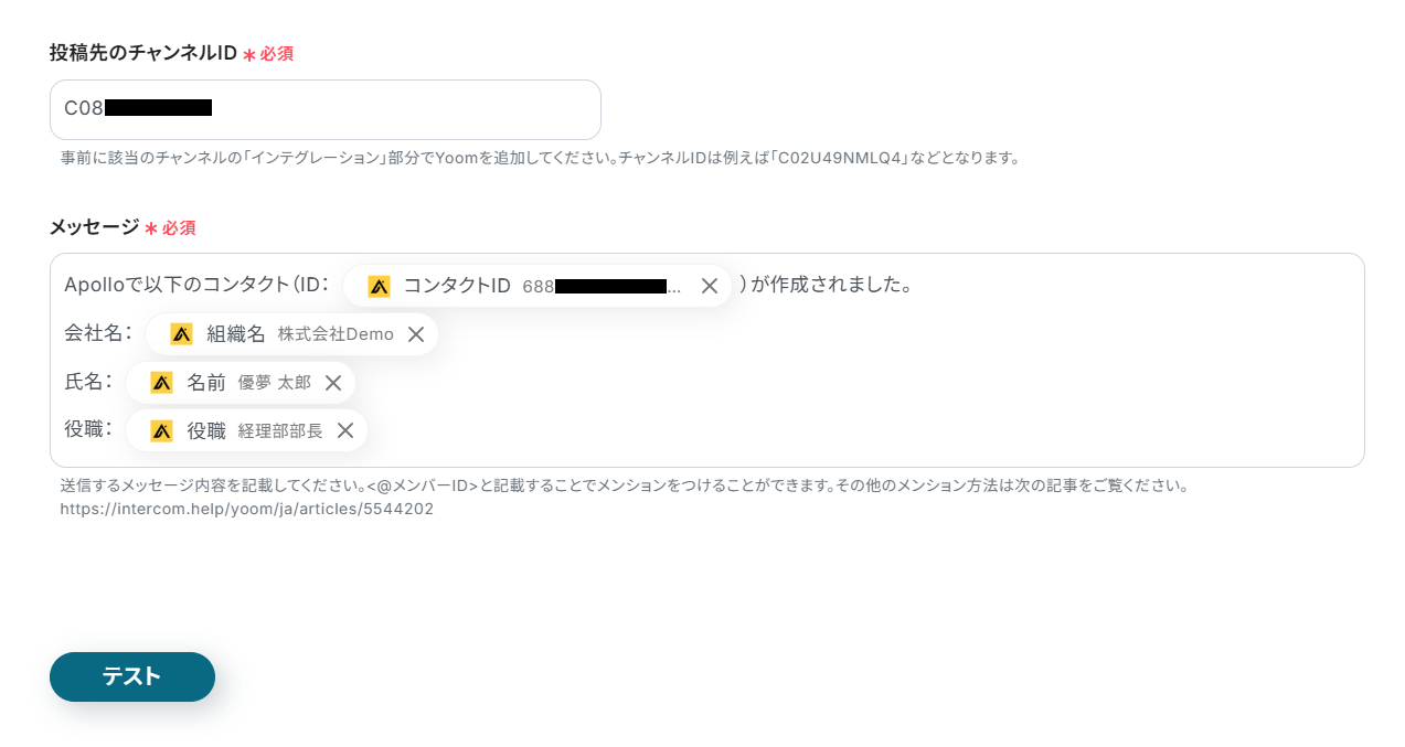Apolloで特定条件に合うコンタクトが作成されたら、Slackに通知する