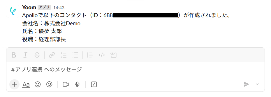Apolloでコンタクトを作成し、それが自動的にSlackに通知されていれば成功です。