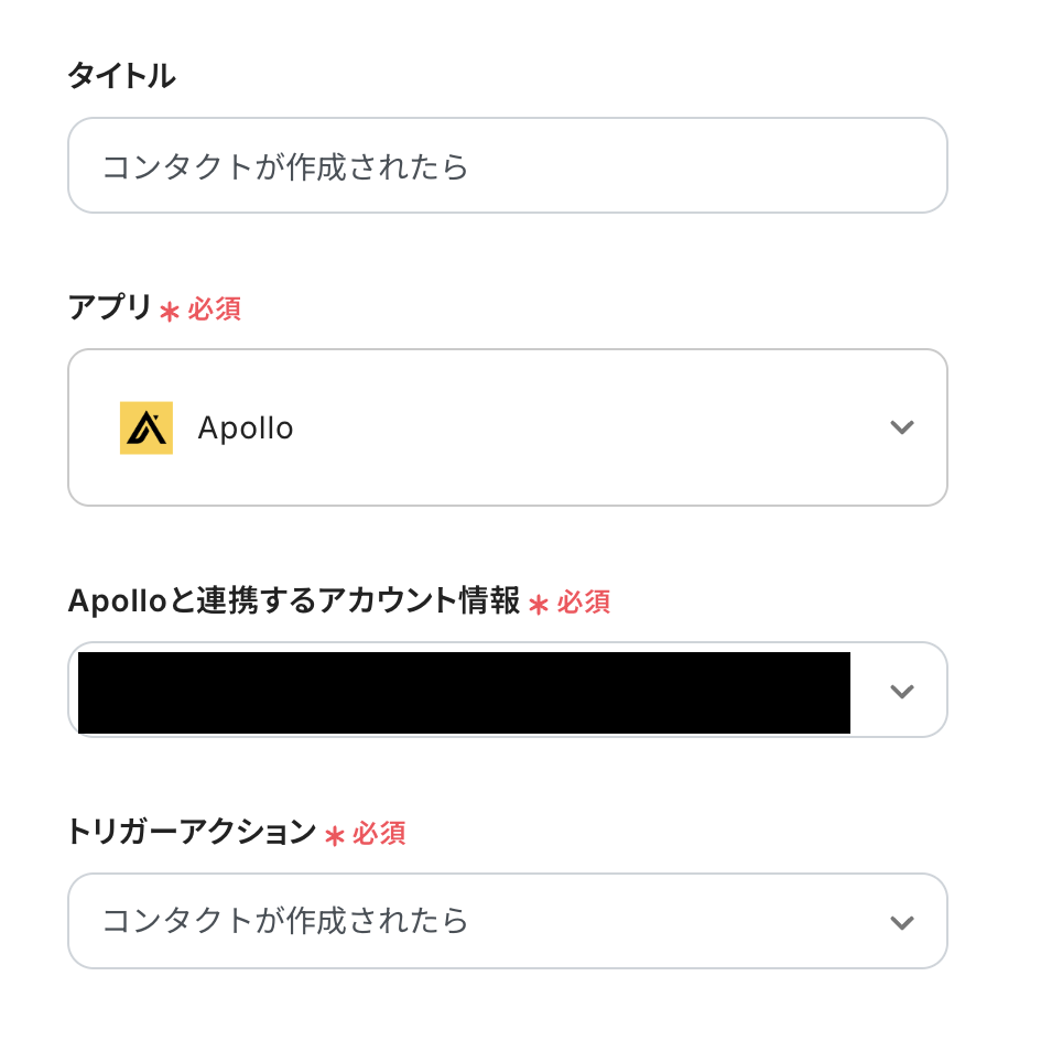 ここでの設定により、Apolloにコンタクトが作成されるとフローボットが起動します。