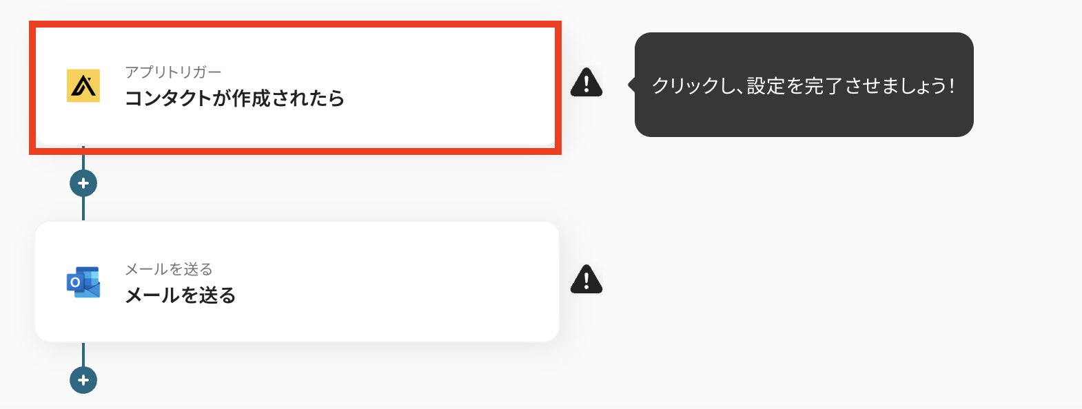 「トリガーアクション」:デフォルトで「コンタクトが作成されたら」が選択されているので、変更しないでそのままでOKです!