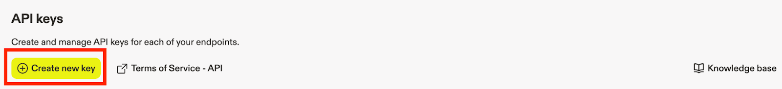 赤枠の「Create new key」をクリックすると発行できますよ!