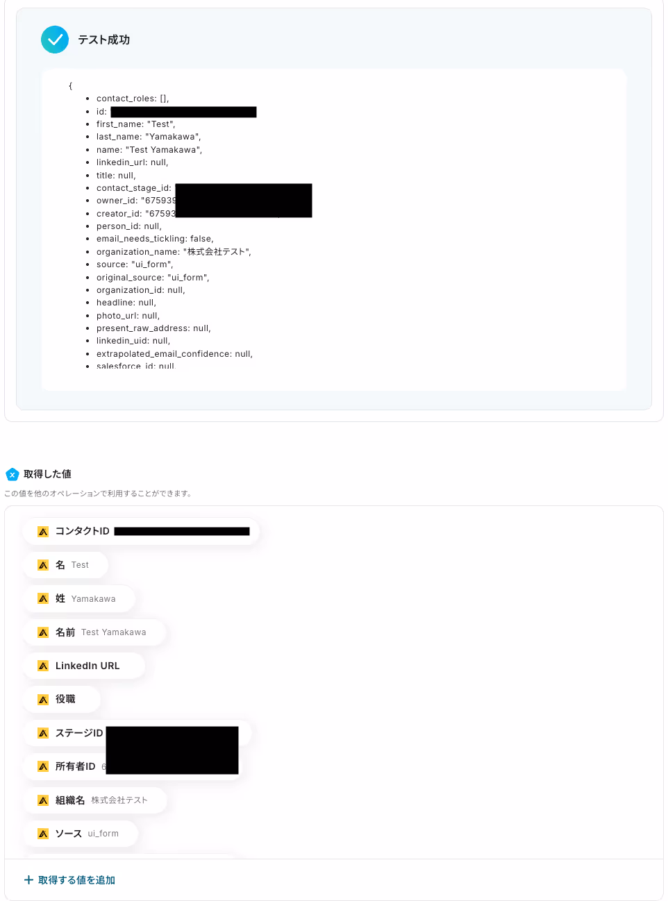なお、テキストを直接入力した部分は固定値とされるため、取得した値を活用せず設定を行うと毎回同じデータがPaddleに作成されてしまうので注意が必要です。