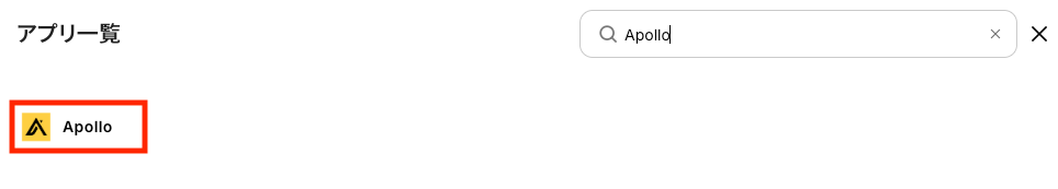 新規接続をクリックしたあと、アプリのメニュー一覧が表示されるのでApolloと検索し対象アプリをクリックしてください。