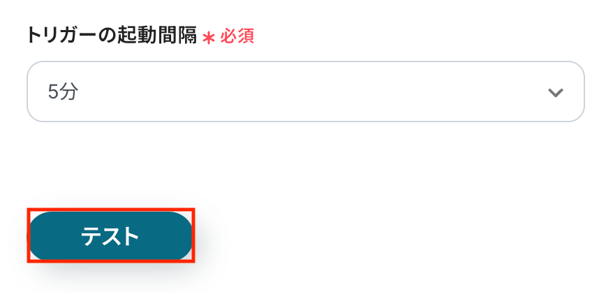 入力が完了したら、設定内容とトリガーの動作を確認するため「テスト」をクリックします。