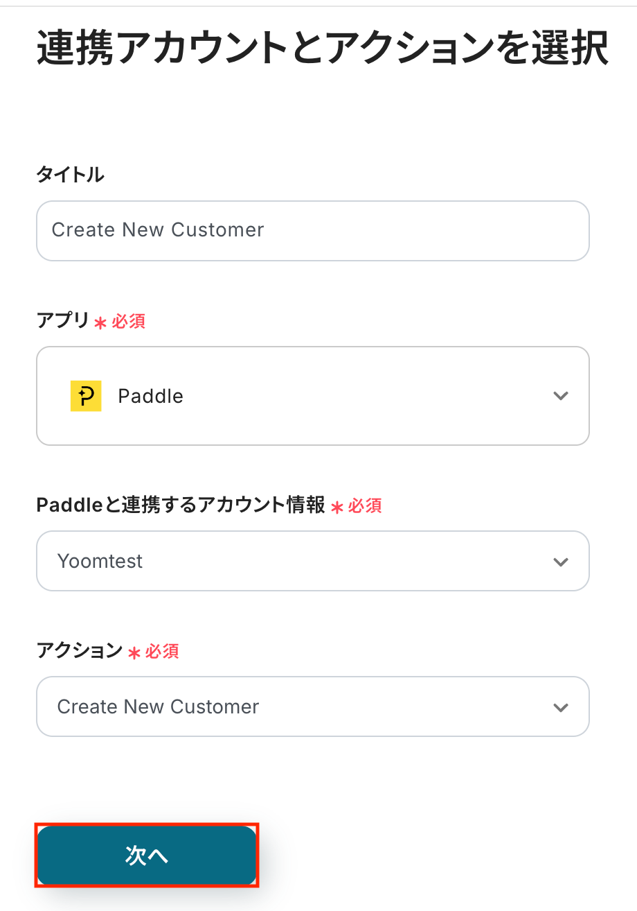 Paddleと連携するアカウント情報に問題がなければ、「次へ」をクリックします。