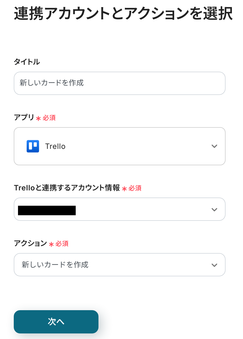 最後の設定です。ここでは、Asanaで作成したタスク内容をTrelloのカードに追加する設定を行います。