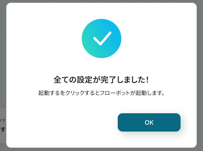 ステップ3:手動で起動する 今回のテンプレートは、「手動起動」を使用しております。 こちらの機能は、任意のタイミングでフローボットを起動できる機能 です。 特定のタイミングではなく、人(担当者)による任意のタイミングで起動させたい場合に利用されます。 そのため、都度、フローボット詳細画面より起動する必要があります。 ※詳しい手動起動の設定方法 は、リンクをご参照ください。