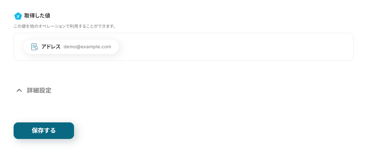 これらの値は、以降のアクションで変数(フローが稼働する度に変わる値)として使用できるようになります。