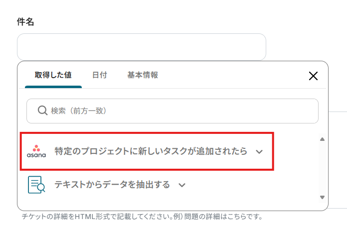 Asanaのプロジェクトにタスクが追加されたら、Freshdeskにチケットを作成する