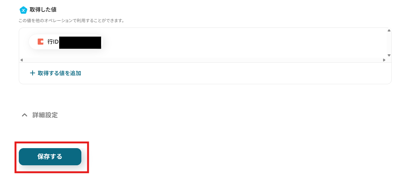 「取得した値」(アウトプット)について、詳しくはこちらをご覧ください。