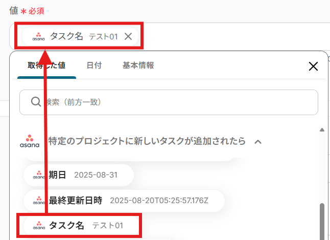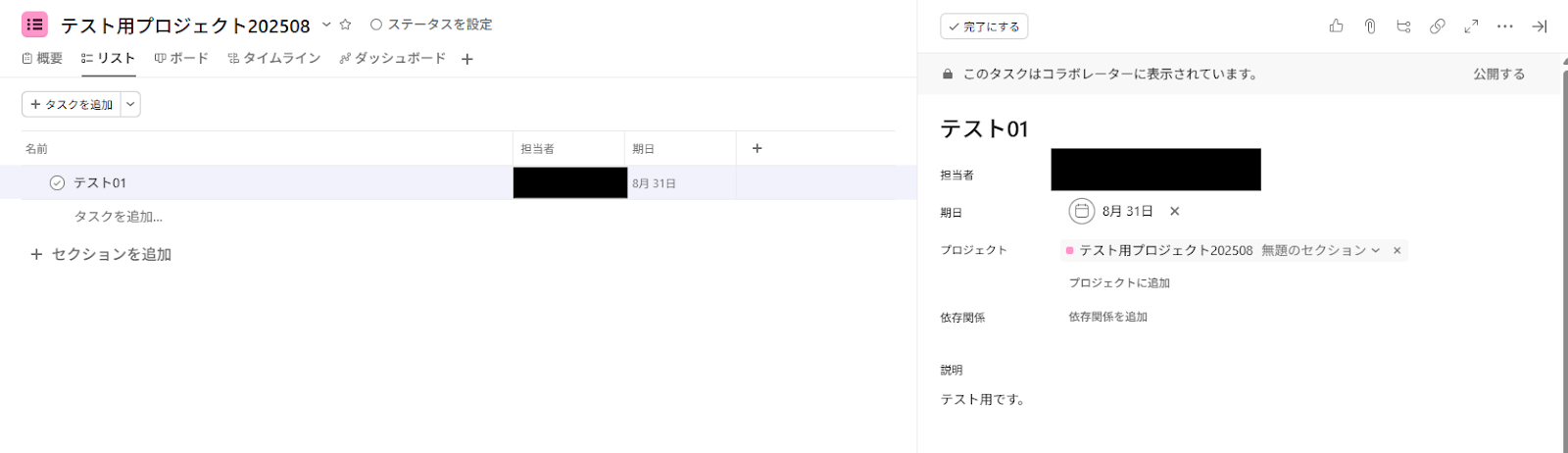ここでは、Asanaで作成したタスクの情報が反映されています。