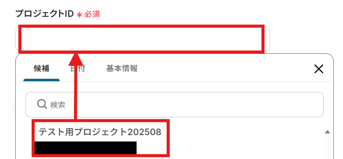 先ほどタスクを作成したプロジェクトを選択してくださいね。