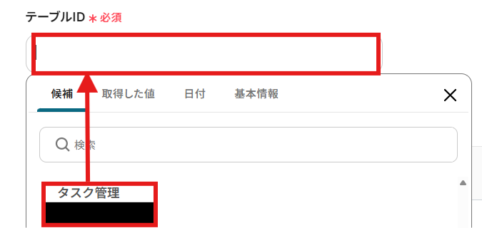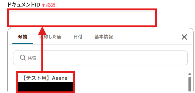 Codaで作成したテーブルの「ドキュメントID」を候補から設定します。