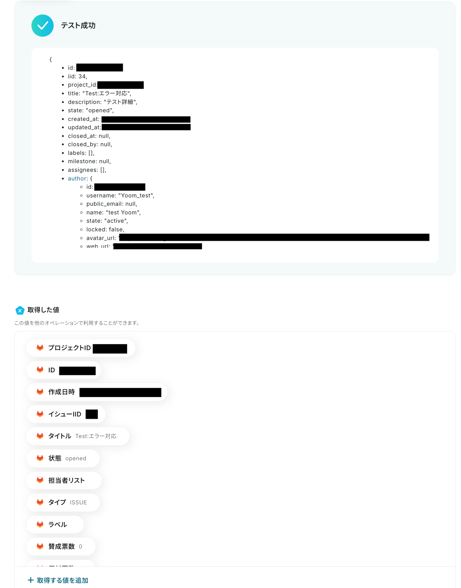 その他の設定も任意で行い、全ての設定ができたらテストを実行しましょう! (テストが成功するとGitLabにイシューが作成されます)