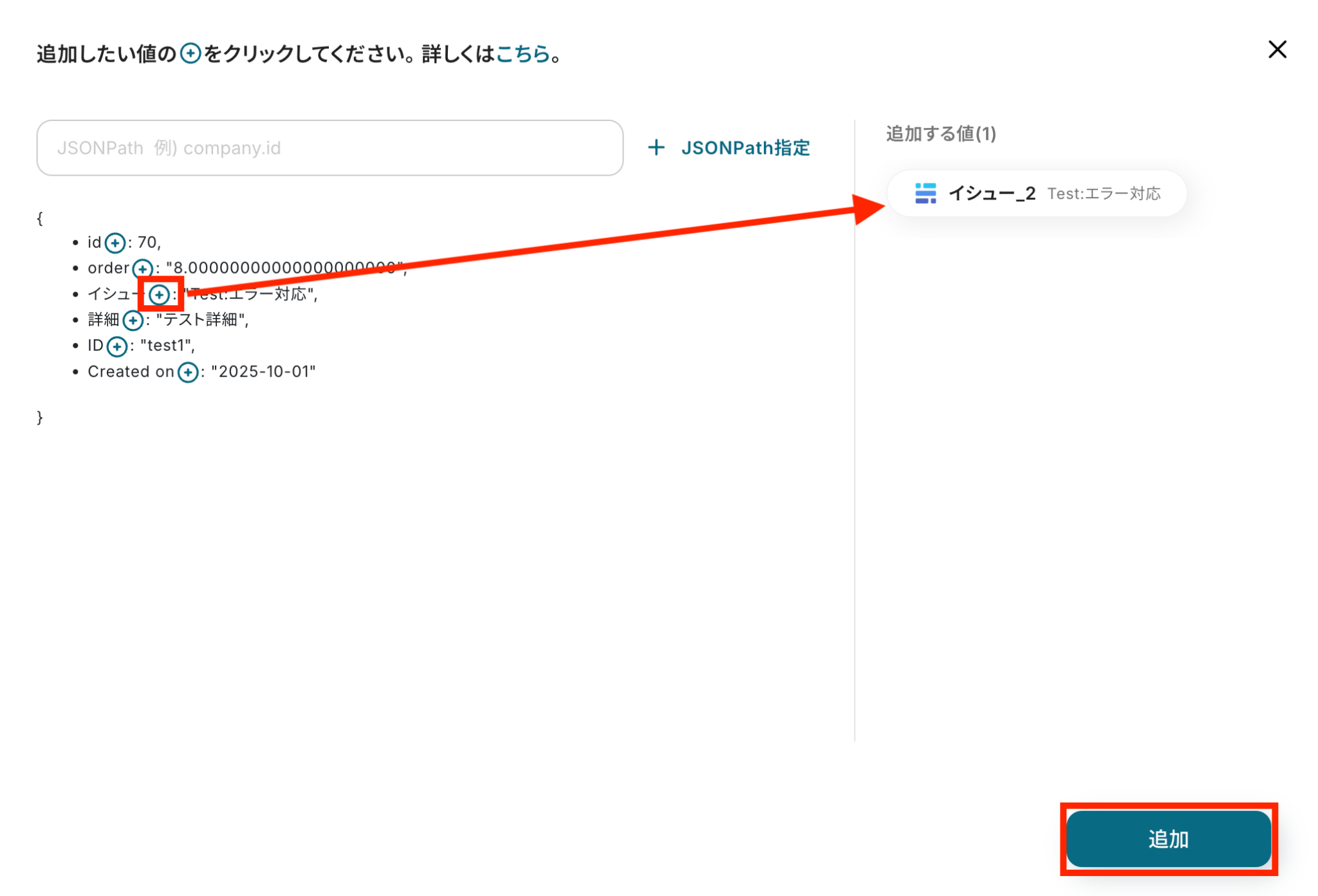 Baserowから取得した値を利用して、GitLabにイシューを作成する設定を行います。 2つ目の赤枠をクリックしてください!