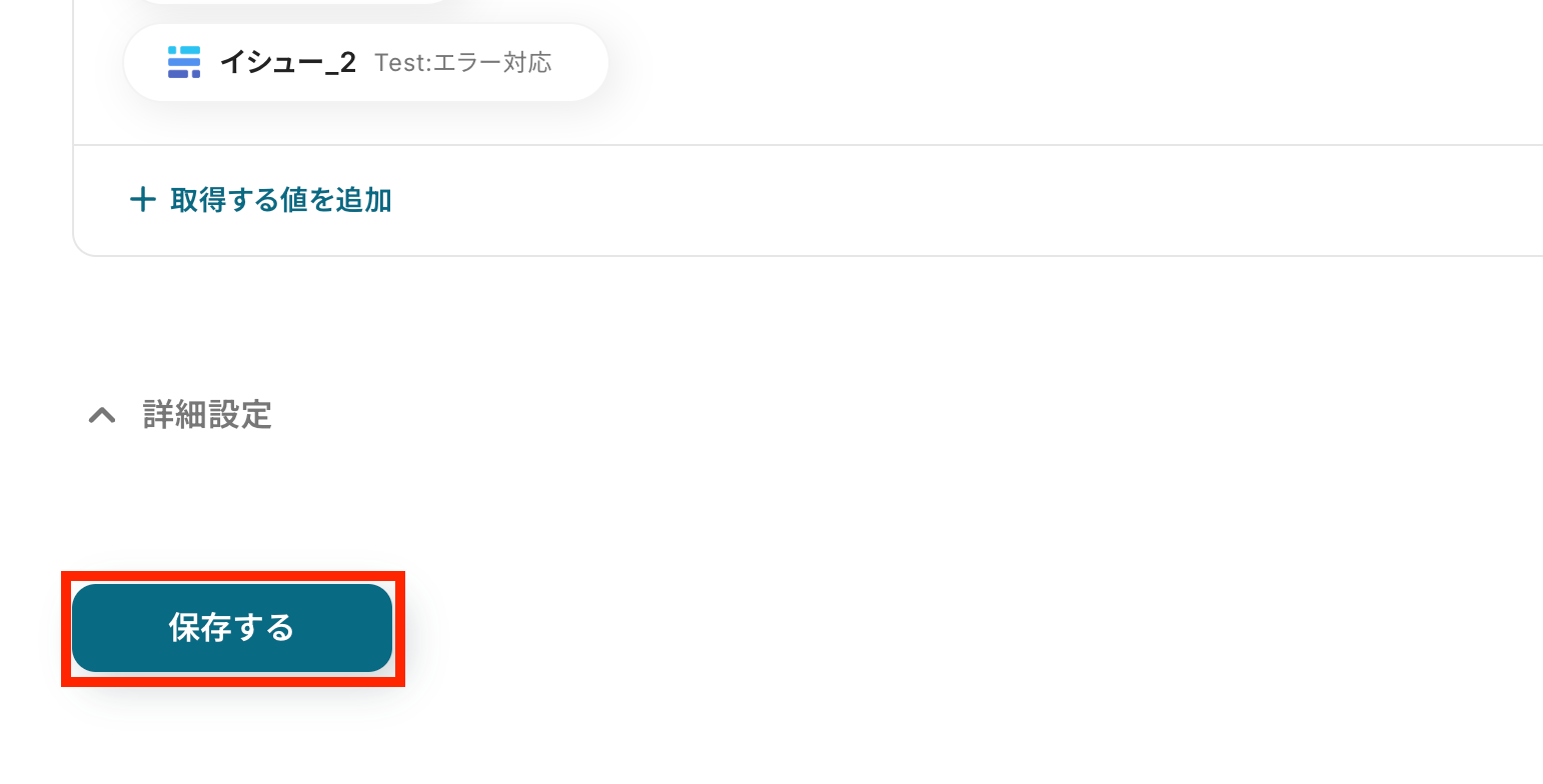 イシューの確認ができたら、Yoomの画面に戻り、最後に設定を保存しておきます。